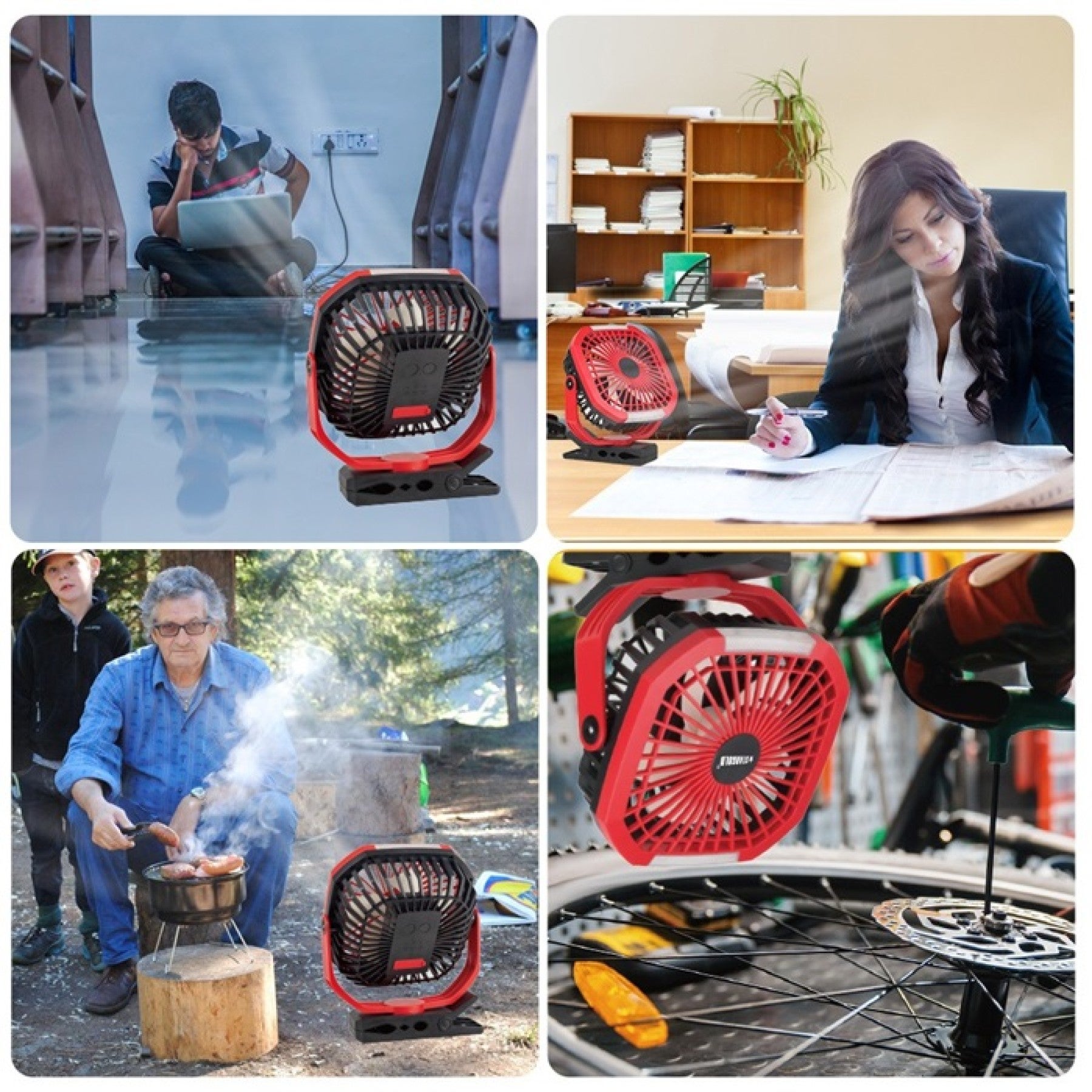 تمتع بنسمة هواء منعشة في أي وقت وأي مكان مع مروحة المكتب القابلة للشحن من ستارغولد – 8 بوصات باللون الأحمر!